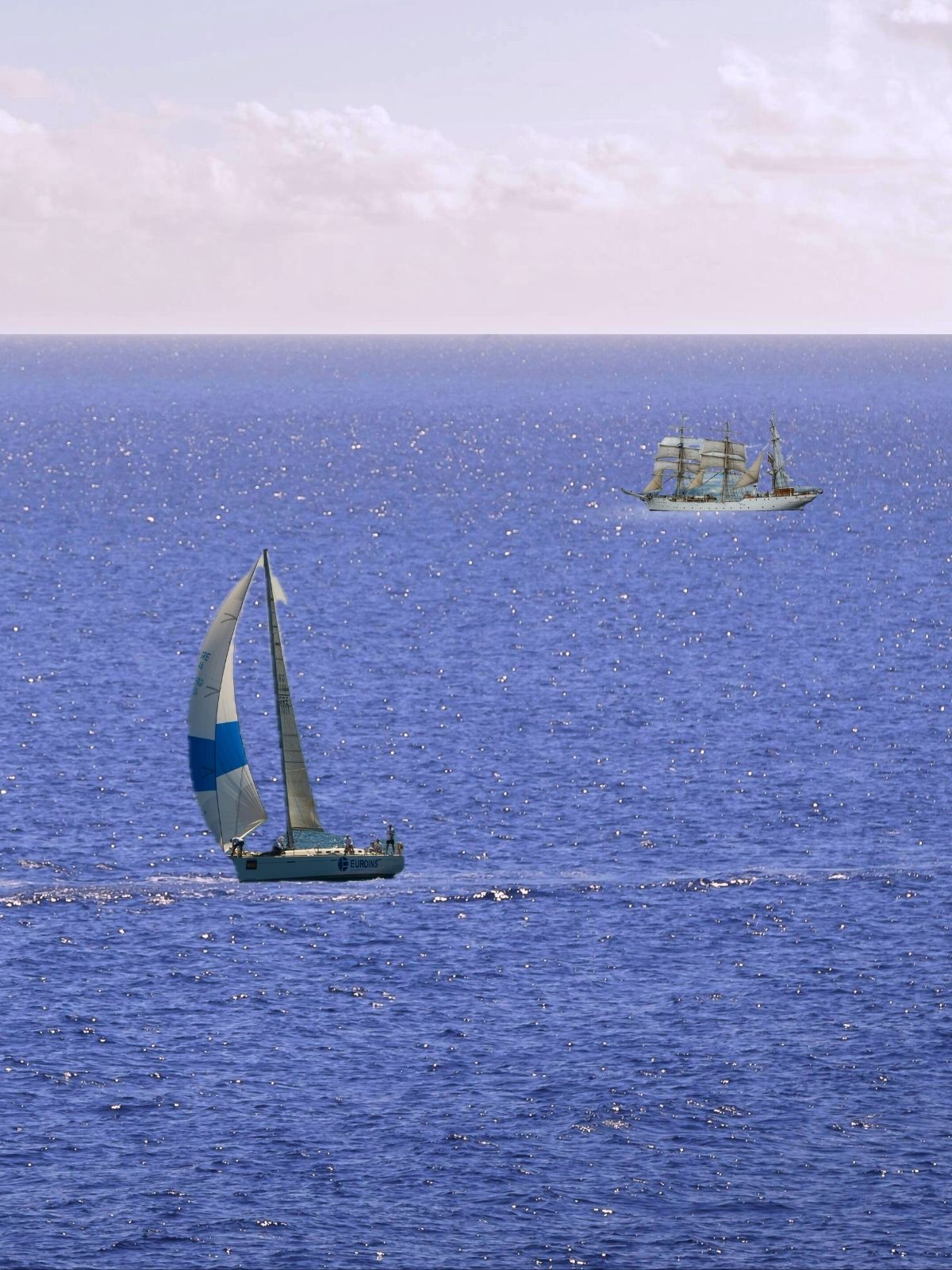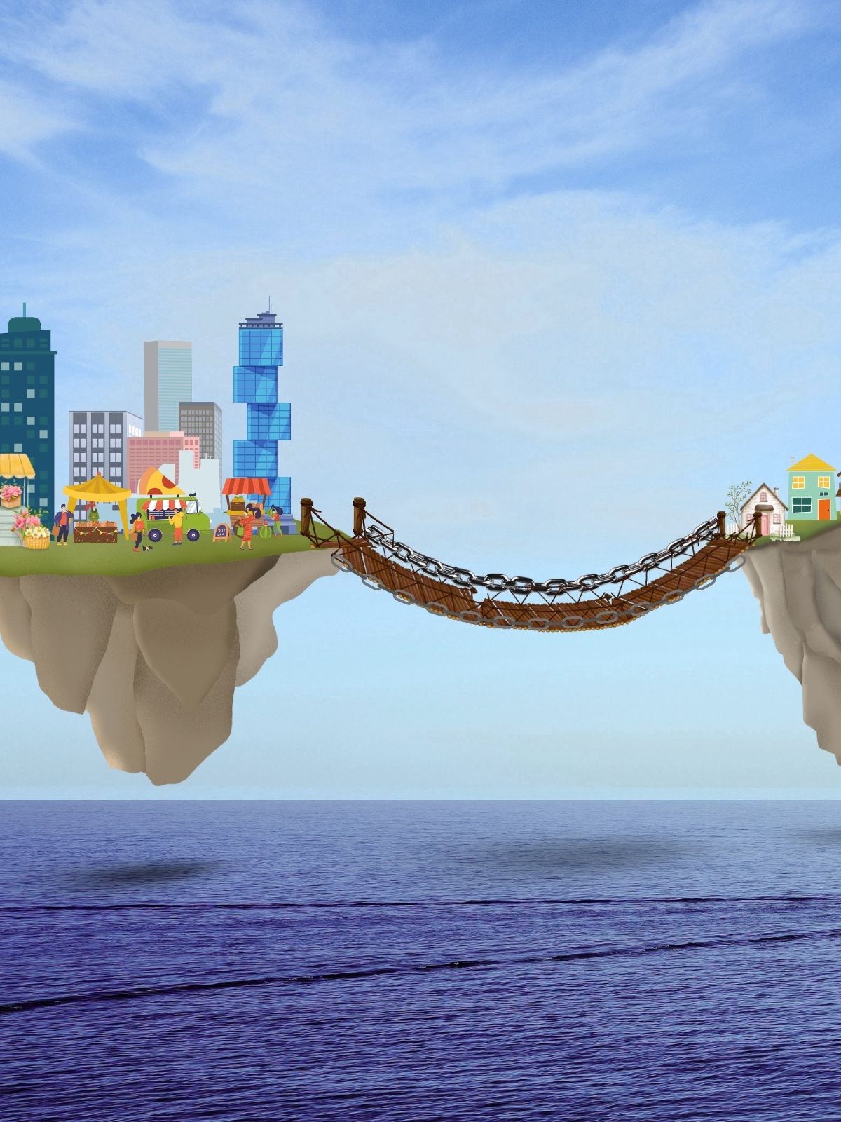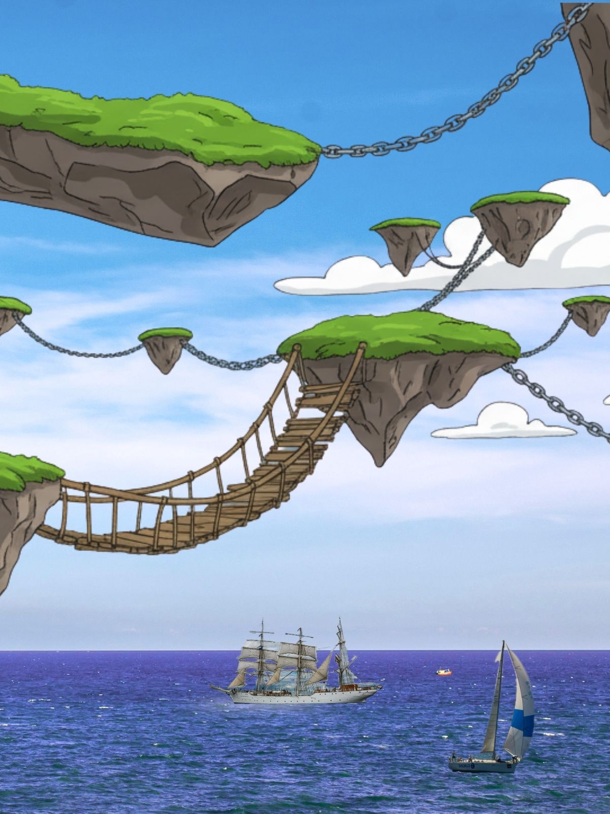 An endless ocean with the land floating above.