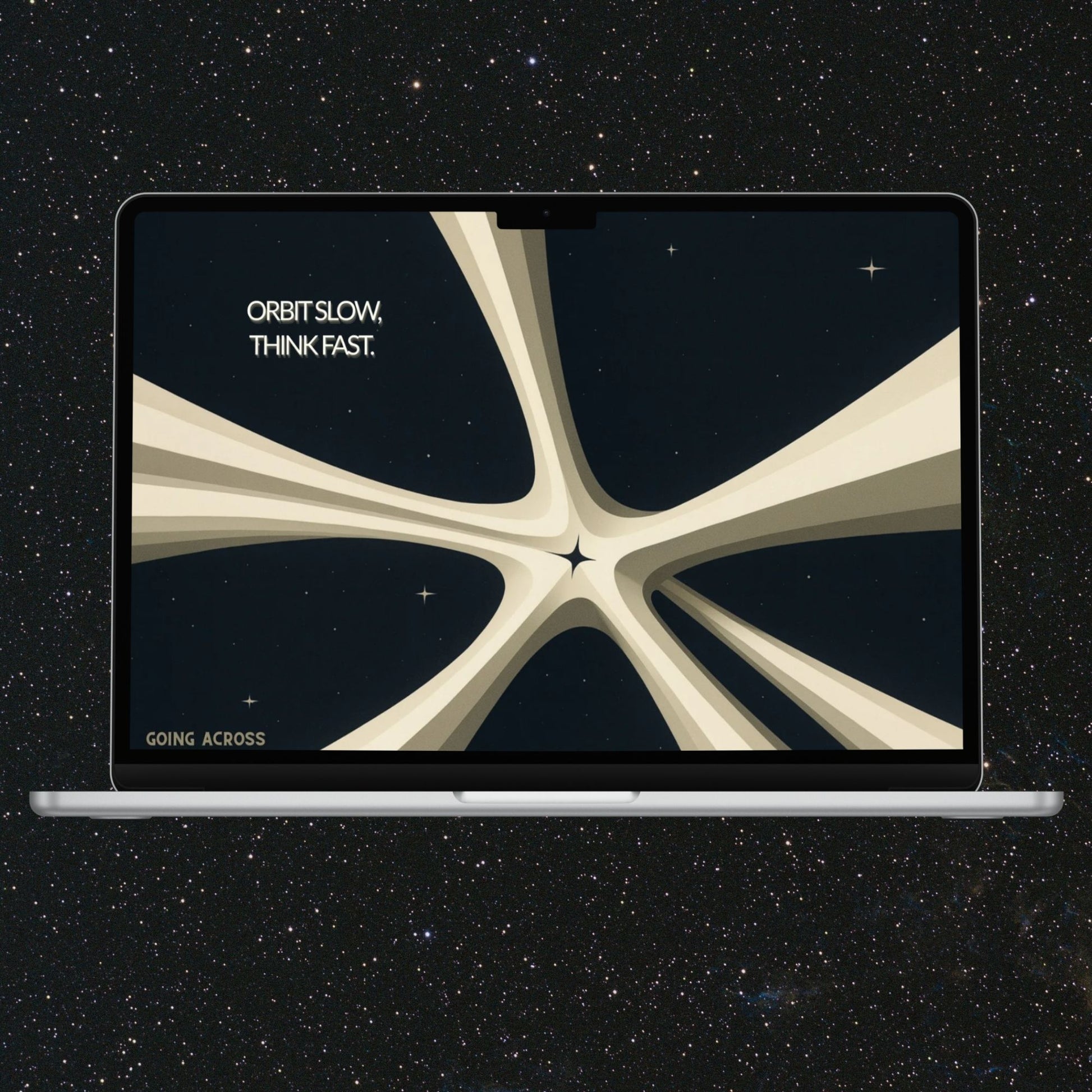 Featuring aliens on horseback, cowboys in UFOs, and silver, gold, rust, brown, and grain floating in space, this wallpaper brings the bold vision of interstellar western adventure straight to your screen. Perfect for fans of retro space art, sci-fi aesthetics, and wild west themes, it’s a high-resolution download optimized for MacBook displays.